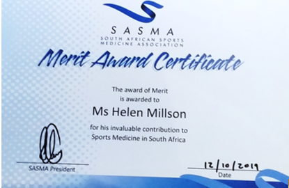 Oct 2019 at the SASMA Congress: Received Merit Award for “invaluable
