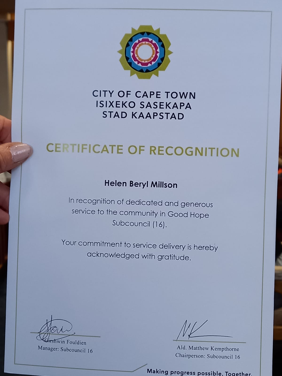 Her professionalism, expert advice and outstanding interpersonal skills have been sought after and appreciated by all medical and management teams at Elite sports level, with Insurers and their Medical teams. She has a unique ability to confer and collaborate with other high-level experts in her field. She was the 'evidence based' clinician for the company and the medical legal advisor within and outside the company. Dec 2020: Received certificate of recognition for "dedicated and generous service to the community in Good Hope Subcouncil (16)."